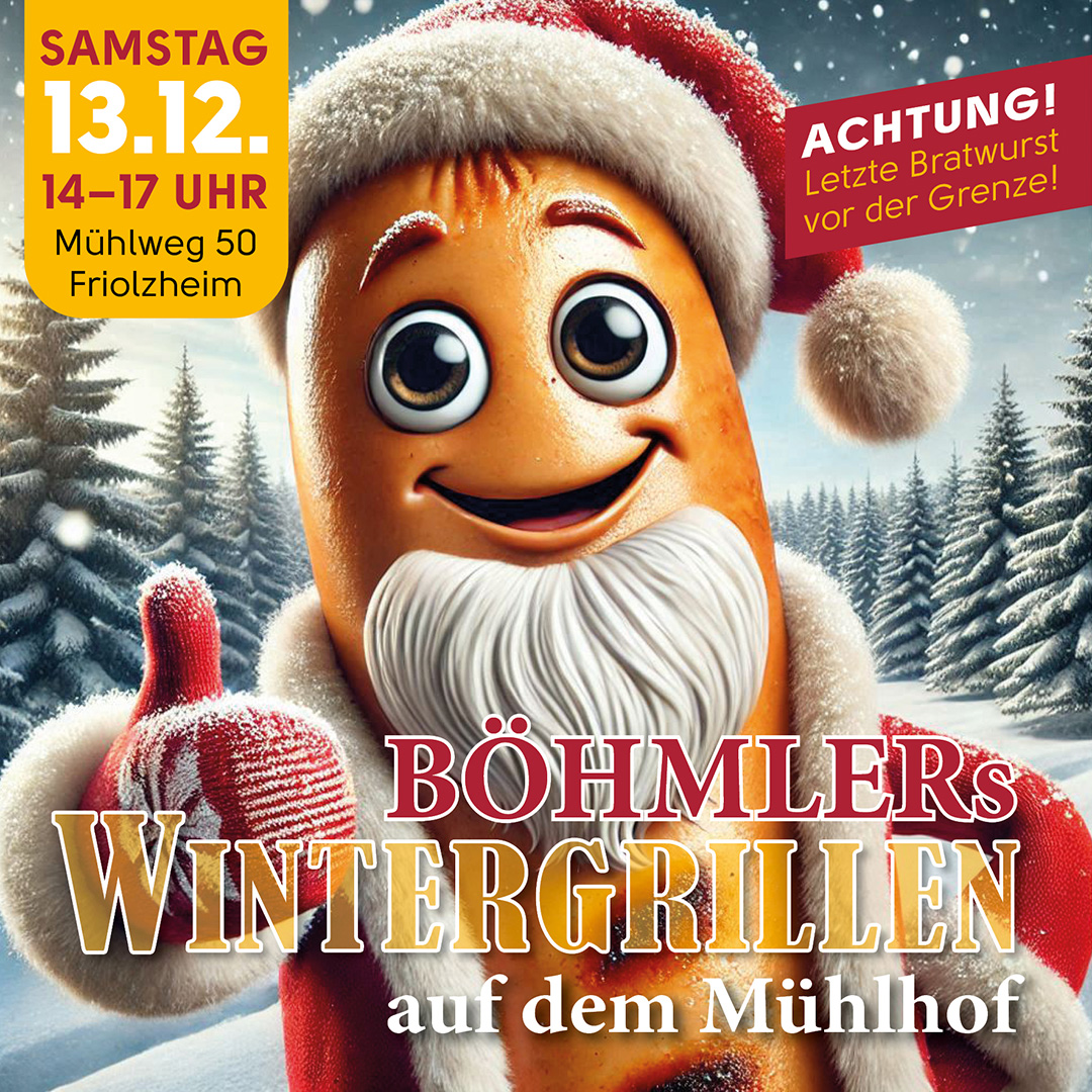 Am Samstag, dem 13.12.2025 von 14 bis 17 Uhr findet bei uns auf dem Mühlhof unser 1. Wintergrillen statt.
